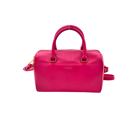 Élégant et moderne, le sac Duffle de Saint Laurent séduit par sa ligne minimaliste et sa praticité. Confectionné en cuir lisse rose, il apporte une touche de couleur vive et sophistiquée à toutes les tenues, du quotidien aux sorties habillées.