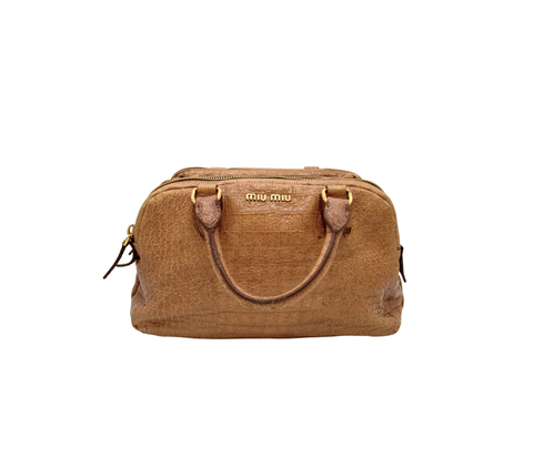 Miu Miu – Sac à Main en Cuir Taupe avec Bandoulière